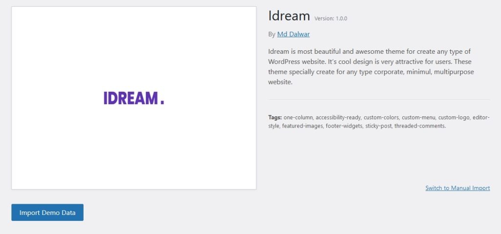 You can import a demo using the Import Demo Data option, which is located under the Appearance.